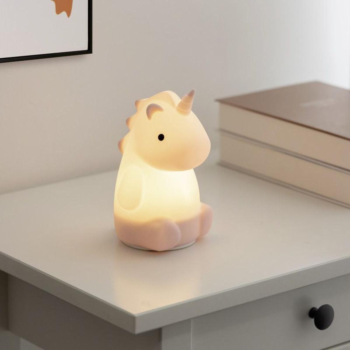 Batteridrevet bordlampe med søtt dyredesign. Justerbare RGB-farger og varm hvit belysning for en koselig atmosfære Kontrolleres ved lett risting. Oppladbar via USB-C (kabel inkludert) Trådløs og fleksibel – perfekt for en avslappende kveldsrutine.