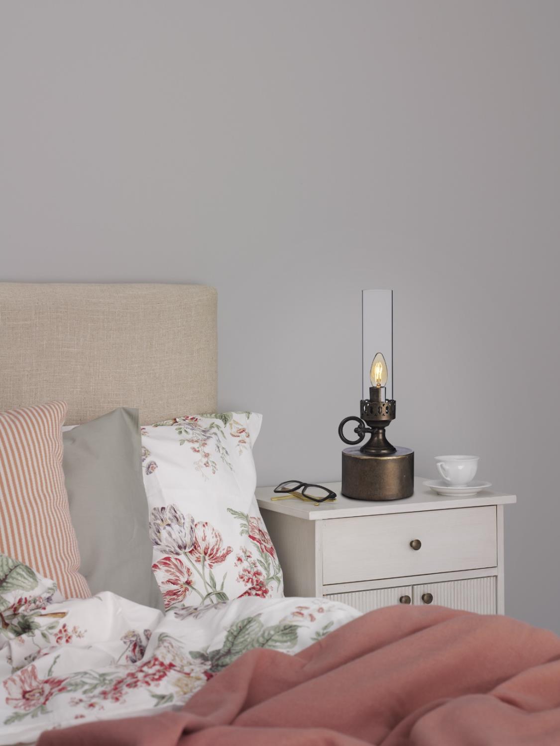 Florentia Antik Bordlampe er en elegant bordlampe som gir mykt og behagelig lys. Passer utmerket på skrivebord, nattbord eller kommode.