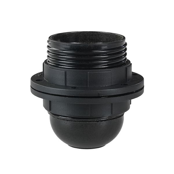 Lampeholder E27 Sort m/gjenger og skjermring