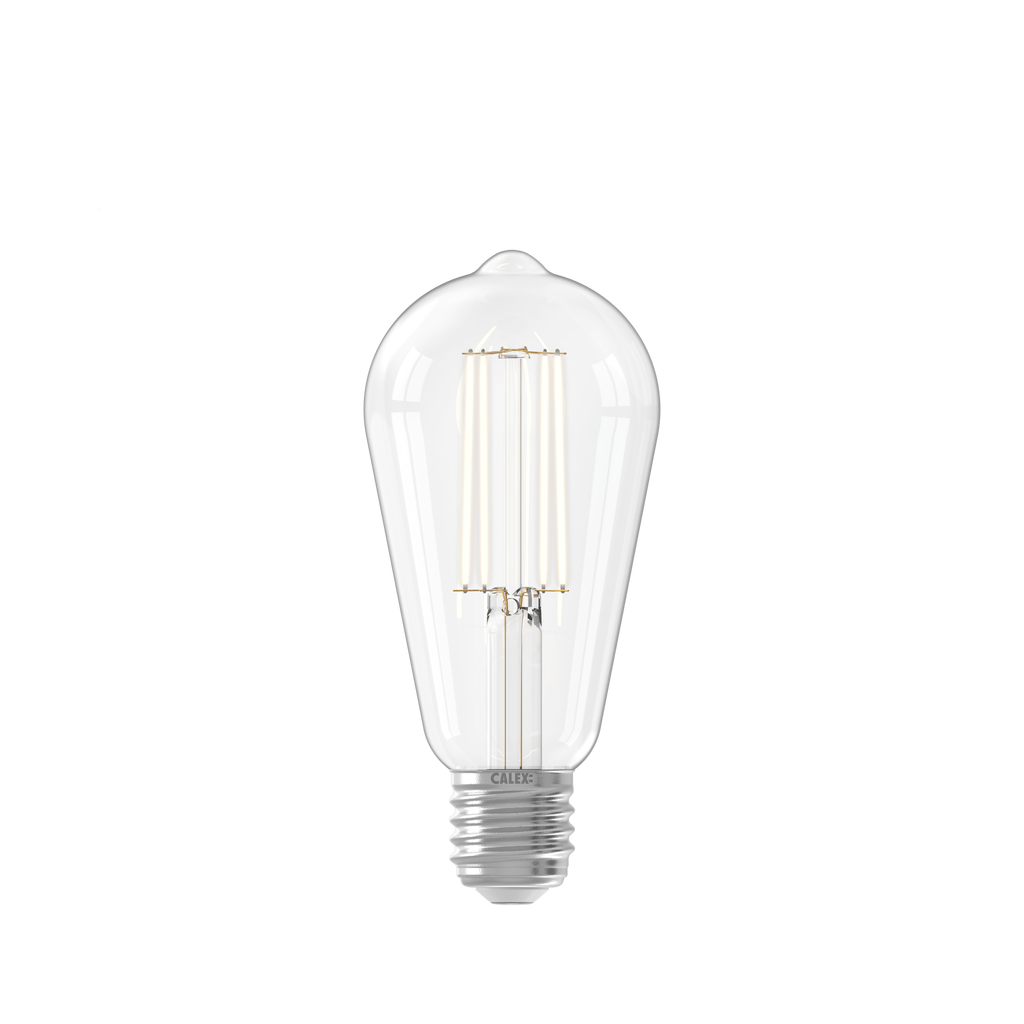 Filament ST64 Klart glass Dimbar Effekt 4,5W Sokkel E27 Rundtstrålende 360° Lyseffekt 470 lumen Fargetemperatur 2700K Ra > 80 Levetid 15 000 timer / L70 Mål ø64x142mm Energiklasse F Merkevare Calex