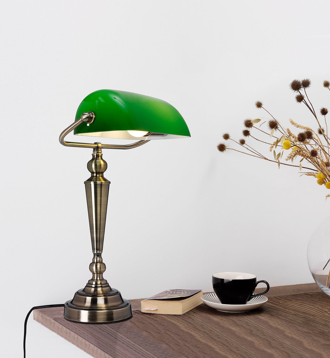The Banker Bordlampe er en elegant bordlampe som gir mykt og behagelig lys. Passer utmerket på skrivebord, nattbord eller kommode.
